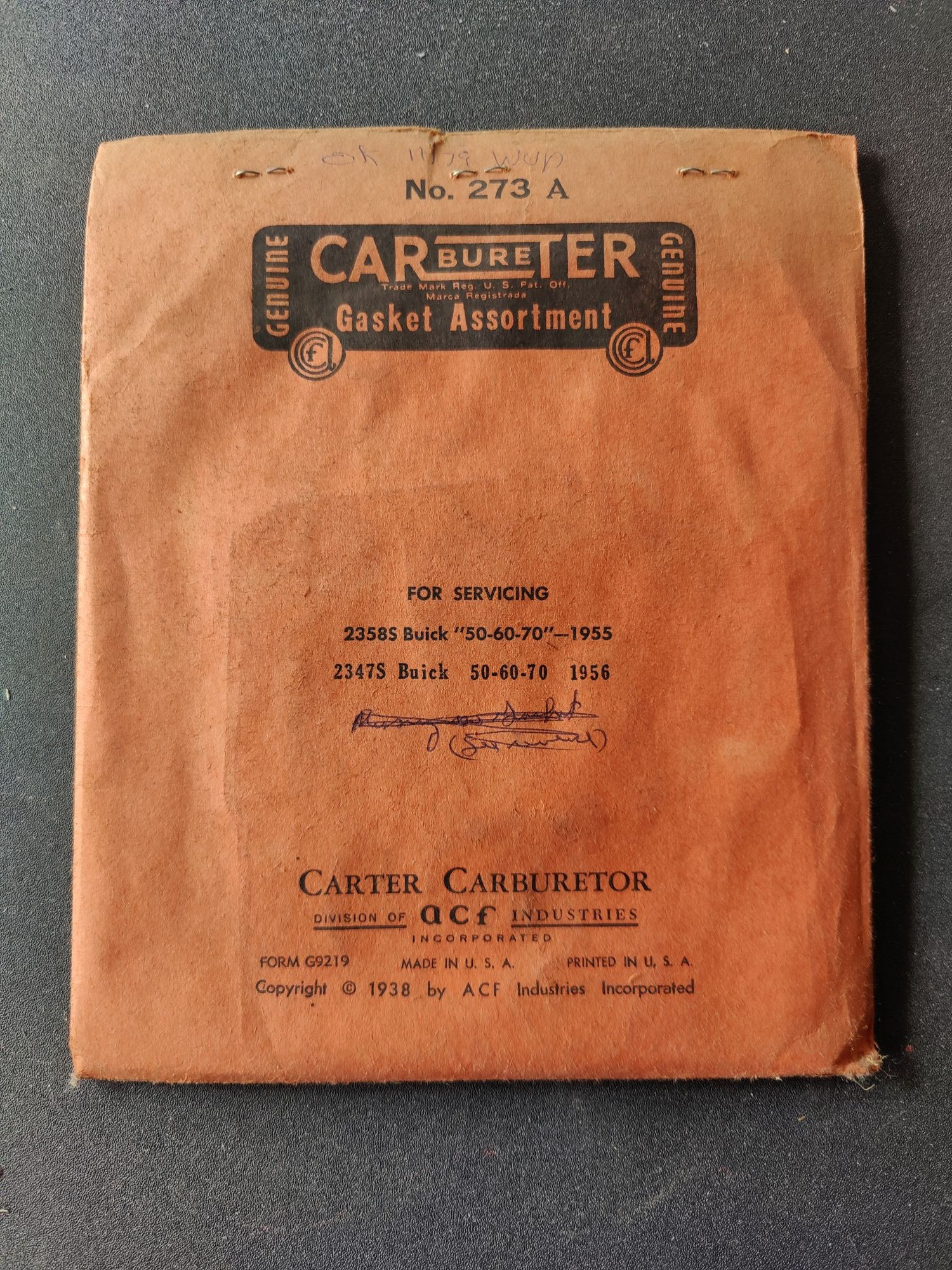 1955-56 Buick 50 60 70 with 4BBL Carter carburetor 2385S, Z-2347S